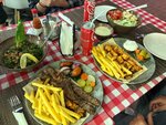 Excellent grilled meat. In different variations. Mutton, beef and chicken. The portions are very large. Greek salad is one serving, at least for two. The meat is served with flatbreads with hummus. There is a menu in English, the waiter explains from the photo. The prices are average. We ate 200 dirhams for 3 people.