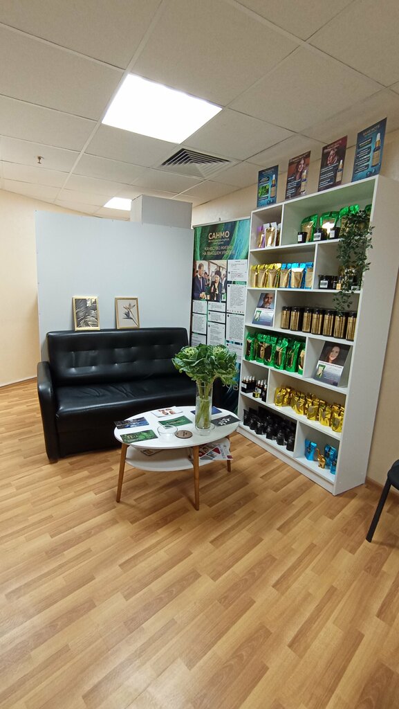 Теплая и радушная атмосфера. Каталог СанМо предлагает продукцию БАДов и космецевтики, сделанных из капустных крестоцветных собственного производства. Вам подробно расскажут про каждый продукт. Удивительное качество - от семечки до масла! Современный интегративный подход к здоровью. Все натуральное и полезное!