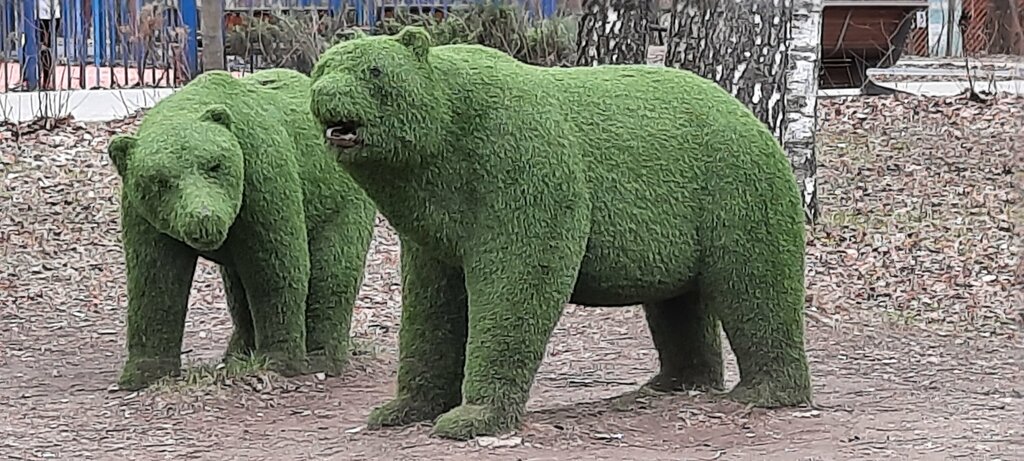 Медведи были хорошие но пора обновлять топиарии. Сильно обветшавшие.