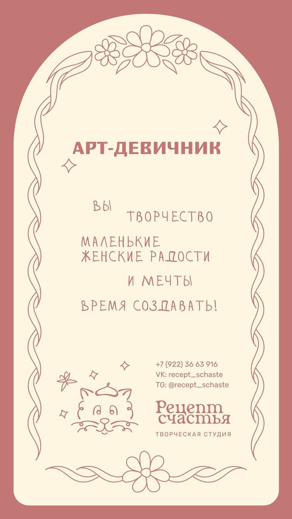 Арт-девичник — рецепт вечера, который запомнится. Ты приносишь подруг, мы — атмосферу, музыку, краски и маленькие волшебства. Здесь можно рисовать на холсте, чашках или футболках, делать свечи с секретами, смеяться до слёз, а ещё — собирать посла...