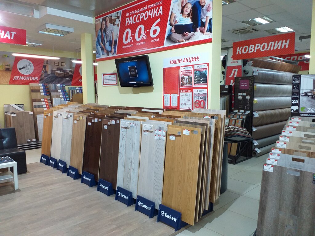 Наконец-то ремонт окончен и хотим поблагодарить этот магазин за качественный и доступный товар. Здесь покупали линолеум,клей, плинтуса и химию для ухода за напольным покрытием. На многий товар есть скидки и гарантии, да и консультируют доступно по всем вопросам. Спасибо магазину!