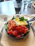 Приятный интерьер с интересными деталями. Хорошее обслуживание. Графинчик с водой сразу на столе, и ее постоянно подливают. Обширное меню завтраков. Мы брали по 2 блюда, все вкусно. Единственный минус: довольно громкая музыка, мы попросили сделать потише, но особо тише не стало. В целом понравилось :).