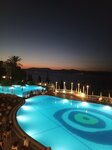 We really enjoyed our stay at this hotel. There are small disadvantages, but they are overlaid by many advantages. Cons: Far from Bodrum airport, we drove for 2 hours. It is not convenient to enter the water from the pier. Animation in Turkish and English. Cool sea in early September. The descent to the beach from the mountain, but there is a constant transfer to the beach. That's the end of the cons. Now the pros: There was private transportation from the airport by minivan. It takes 2 hours to drive, but with the incredible views around, the road is a pleasure. The sea is clean, there is a separate entrance to the "open" sea. We got the topmost bungalow, not far from the main building. It offers stunning views of the sea and mountains, and has its own private terrace (though with bird poop on the pyrila). There are only 2 rooms in this bungalow, and they were ours. There were no strangers around. The food is no frills, but there is a large selection, there was always something to eat. There are bars everywhere:lobby,pool,beach,water park. There is a bar near the beach and they give snacks, we always had lunch there. We cleaned every day, towels were always changed. This is a quiet family hotel, there were foreigners in Ostrovny. There were no loud Russians, which is a big plus. The music is always foreign, but if you ask, they will include Russian. Every evening there is a mini disco for children and an evening show. I definitely recommend this hotel, because the hotel is on the mountain, there were always beautiful views with an unreal sunset. Beautiful panoramic elevator. And a very big plus, WiFi worked absolutely throughout the hotel. P.S. I do not recommend Ala kart restaurants.