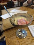Зашли целенаправленно, хотелось грузинской кухни. Меню неудобное: граммовка порции не указана, также совершенно странно в меню располагается знак /, что сбивает с толку и мешает пониманию. Порадовала быстрая подача блюд и вежливая и внимательная девушка-официант. Заказали один коктейль, который выбирали по составу, в итоге принесли что-то полностью отличающееся от желаемого коктейля. В составе ожидаемого вовсе не была прописана клубника и мандарин, похоже, что перепутали с другим коктейлем. На замечание, что напиток не тот, убедили, что коктейль принесен верный и все по пробитому заказу. Разочаровало. Шарики мороженого вкусные, но объём очень маленький, даже меньше, чем в кафешках в самом центре Москвы. Из достоинст: вкусный суп из щавеля, хачапури, понравился салат с черносливом. Место тихое, уютное, но немного грязновато. На столе не хватило на всех столовых приборов, пришлось взять с другого столика. Возможно, привередливо, но объективно.