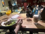 Очень понравилось! Столик возле улицы, супер, как в Мюнхене. Все, что заказывали приносили быстро, горячее и вкусное. Больше всего понравились хинкали с курицей и сулугуни и салат с печенью, но в нем не хватало фрукта (грейпфрута или апельсина). Лимонад тархун не сильно сладкий. Все супер! Рекомендую)