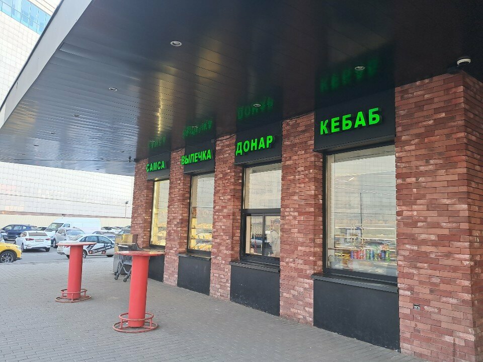 Рядом выхода чайхана продается самса шаурма выпечка . Там даже не обращает внимание что они продают. 2пирожки с кортошка. И 2самса бараниной . Ул было холодно машину пашод там кушат. Самса сильно сгорел половино черный. Поменял другой это тоже также черный и внутри тухлый . Персонал продавец плохо относится . Расказываеш замечания серез не принимает . Думаю остальные еды тоже не свежие . Рекомендую не покупать.