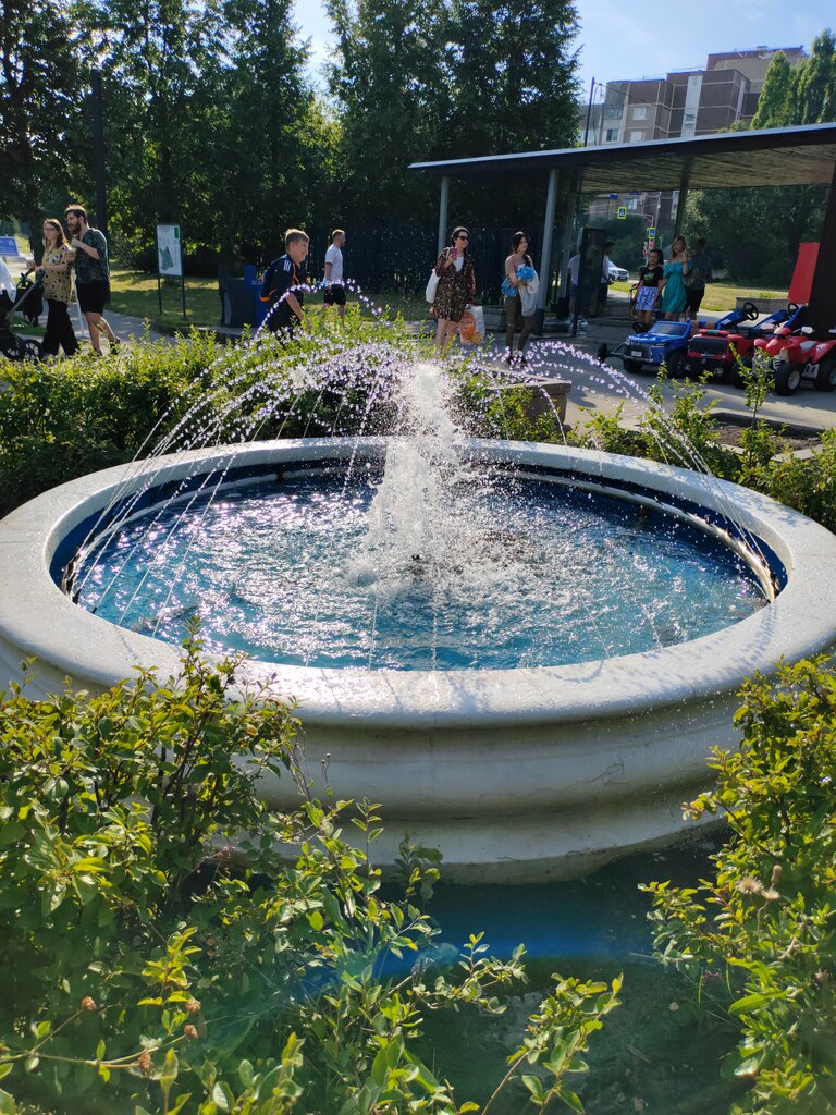 Совсем небольшой простой фонтанчик встречает гостей у главного входа в Ландшафтный парк. Скромный фонтан своим журчанием создаёт приятную атмосферу.