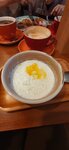 Рисовая каша на сливках с персиками, джемом и воздушным рисом