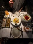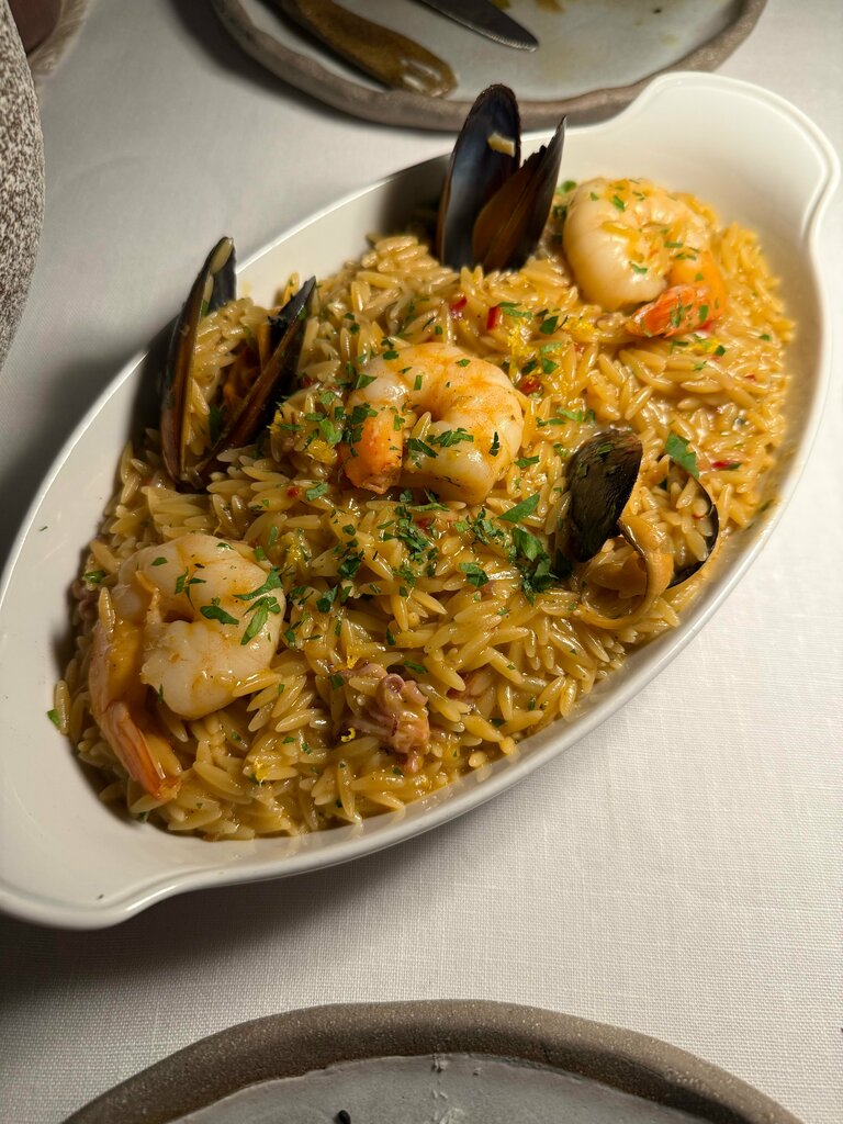 We got into this restaurant by chance, since it is located on the 8th floor of our hotel. But with this review, we will try to convince you to visit this place on purpose, even if you are not staying at Khai Karakoy. The restaurant is small, cozy, with dim lights, high-quality interior decoration and a wonderful panoramic view of the Galata Bridge. We started with the appetizers, which included: 1) roti celery root with fried apricots; 2) Turkish cheese with chili pepper jam; 3) mussels with stewed leeks. As a small compliment, we were offered another Turkish cheese with thyme and cold-pressed olive oil. The freshness, quality and taste balance of the dishes were, I'm not afraid to say, Michelin-starred: nothing superfluous, each dish with up to 3-4 ingredients, no accumulation of flavors and only perfectionism in every detail. The prostate, coupled with the perfection of cooking, is what you would expect from a gourmet restaurant. Even the stewed leek was cooked so that it could be eaten as a side dish. On the second, we were pleased with orzo pasta with seafood — and, again, nothing superfluous: only perfectly cooked pasta, thick, seafood sauce based on seafood juice without (!) any flavor-enhancing additives, cream, etc. The pasta was prepared at the level of an excellent restaurant in Italy. To all that has been said, it is necessary to add sensitive service: even to the point that after each dish the chef himself came out to us and inquired about the quality of the dishes. An important and customer-oriented practice, which, unfortunately, is now ignored in many, even expensive restaurants. Special admiration can be expressed to the bartender for the delicious and unusual cocktails. The Aura rum-based cocktail with smoked figs and a pleasantly tingling aftertaste of chili peppers was particularly enjoyable. The whole dinner cost us 80€: and this is an infallible combination of price and quality, and therefore a confident and well-deserved 5/5. Thanks to the chef and all the staff.