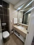 The hotel is conveniently located opposite a park with a lake and a running track, 5 minutes to a grocery store, 15 minutes to a shopping center, there is an exchange office on the way. The room has bottled water, a kettle, tea and coffee. Everything is clean and well. Dinner buffet. Fruits, desserts, salads, soups and main courses. Tomorrow is good too.