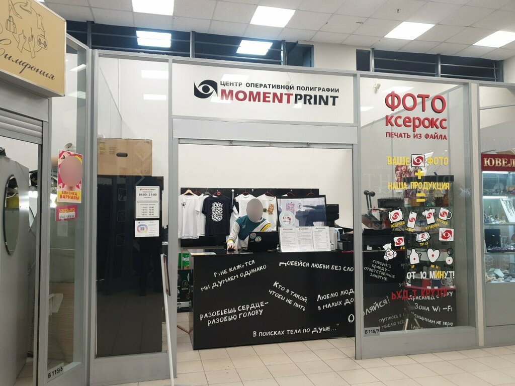 Отличный копицентр, всегда обращаюсь только сюда. Печать, фото на документы, принты на футболки/кружки - ребята все делают качественно, быстро и недорого 👍🏻 всегда помогут с макетами и подскажут как сделать лучше. Очень удобно, что можно заранее отправить что-либо на печать и прийти забрать сразу! Еще и от метро 2 минуты )