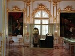 Церковь во имя апостолов Петра и Павла в Большом Петергофском дворце сейчас музей.Совсем маленькая ,в ней небольшая Трапезная и Церковный Зал .Наверное,символично,что эта церковь,где происходили крещения,венчания,причащения Романовых -именно во имя апостолов Петра и Павла.Здесь самые радостные события,а опять же в Петропавловском соборе -семейная усыпальница царей.Как будто круг замкнулся.Церковь по -царски великолепна,золото повсюду в Алтаре,в окладах икон,убранстве стен и потолка.Барокко и простота несовместимы.Осталось не так много образцов елизаветинского барокко, и эта домовая церковь один из его примеров .Необыкновенно хороша.Увидеть стоит.