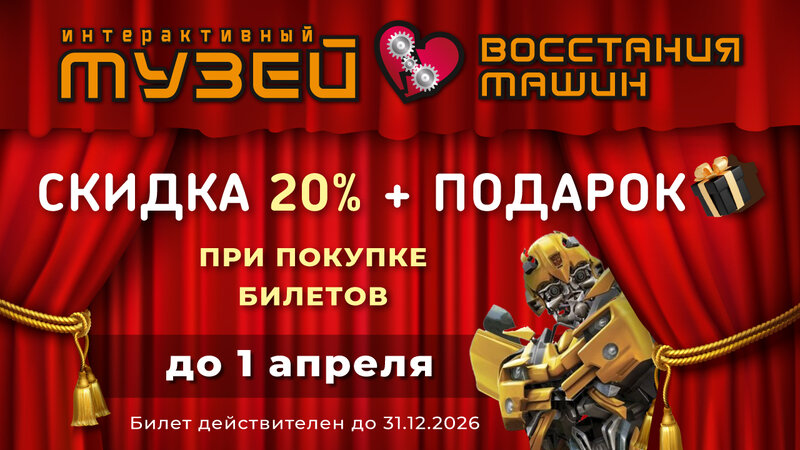 Стоимость детского входного билета - 800 рублей (будние дни) В стоимость входит посещение музея площадь 1.500 метров Просмотр 4 шоу программ Танцы роботов, Тесла шоу, крио шоу и шоу мыльных пузырей