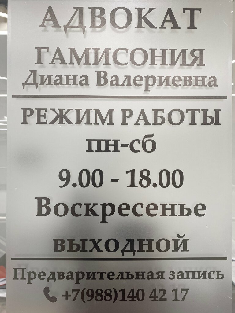 Legal services Адвокат Гамисония Д. В., Krasnodar Krai, photo