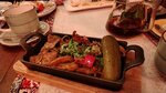 Противоречивые чувства от посещения ресторана. Плюсы: хорошее расположение, около метро в красивом месте в центре, можно погулять по красивым пешеходным улочкам до или после посещения, обслуживание хорошее, все принесли быстро, официанты вежливые, блюда вкусные, мясо горячее и мягкое, приятный интерьер, хорошая музыка, поздравляют с др и вручают десерт в подарок. Минусы: вечер пятницы при полной посадке очень тесно, официант ходит совсем рядом чуть ли не задевая ваши тарелки, а если вы вышли в туалетную комнату а официант принимает у столика у окна заказ, придется возвращаться к своему столу вокруг, мне попалось что-то в мясе, какие-то частички, как маленькие камешки, хорошо что попались уже в конце блюда, сказали официанту, принесли в качестве комплимента десерт, это конечно хорошо но осадочек остался. Вернусь я вряд ли.