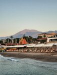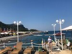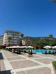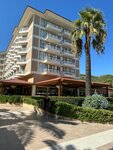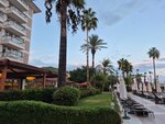 I have been staying at the hotel for a week now and what can I say: the sea is super, clean, the water is clear, every pebble on the bottom is visible, there are no algae and fish, calm, the wave is small, although the end of September. The hotel rooms are cozy, small, but comfortable. They don't always have time to clean up, because the hotel is filled to capacity. The staff is polite and qualified. Food: the range of dishes is discouraging, the eyes run away. Everything is delicious and beautiful. And most importantly, everything is always fresh. A large selection of fruits daily. Lots of meat, different. Seafood is often served. The waiters are attentive, the wine is poured according to the look. The wine is of good quality and delicious. The bars are always open. A wide variety of drinks and cocktails. There are several bars, a Turkish cafe, and a snack bar on site. In general, in my opinion, there are no disadvantages or they are not significant.