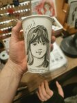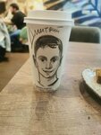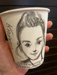 На заказ нарисуем Ваш портрет на стаканчике, актуальный сувенир для родных и близких 450мл Бумажный стаканчик, черная крышка