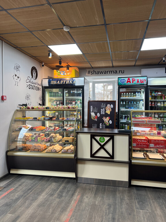 Очень вкусная шаурма, вкусный кофе! Есть столики и стулья, где можно спокойно перекусить! Так же имеются тут всякие вкусняшки и тортики+ куча разных сладких напитков! В общем рекомендую)