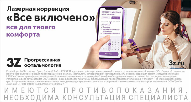 Добрый день. Я из Свердловской области. Искал клинику для лазерной коррекции зрения. Больше всего по отзывам и рекомендациям понравилась клиника 3Z. Приехал в Пермь, прошел обследование. Отличный персонал, хорошее современное оборудование. При моем зрении и некоторой степени астигматизма предложили операцию методом femto super lasik. Я согласился. На следующий день сделали операцию, за что хочу поблагодарить хирурга Шуваева Антона Викторовича! На следующий день приехал на осмотр. Проверили зрение, хирург осмотрел, всё хорошо. Выписали капли, витамины, дали рекомендации. Через месяц поеду на контрольный осмотр. Сейчас мне 33 года и я жалею только об одном - что не сделал коррекцию зрения раньше и маялся с контактными линзами и очками. Всем добра!