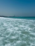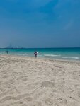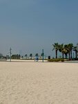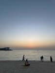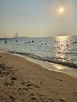 The beach is very cool and clean.There are a lot of cafes, even a lot of people, but there is a very smooth and not deep descent into the water (especially for children).Walking a little further to the Parus hotel, there is a less crowded beach with a slightly steeper entrance to the sea.There are toilets/changing rooms/showers/cafes/taxis/sun beds for 85 dirhams per person or 140 for two.Wi-Fi is free, but when choosing the country of the Russian Federation, it takes 5 minutes only when logging in using a local SIM card.There's no garbage or fish in the water.The sand is also clean without debris.I highly recommend it, compared to jbr or Marina.It's a very beautiful sunset.Lifeguard is on duty and the police are patrolling.Everything is safe and clean.The bathing area is fenced with a net.