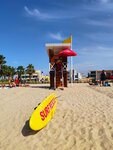 The most normal beach, there is Marina beach, there are a lot of tourists there and in the water there is a package, a cork, a piece of paper... The kite is clean, divided into 6+ zones. There are cafes and shops in one of the zones. There are changing rooms where you can wash your feet and take a free shower! There is a bike path, a running track and a walking path with palm trees that look amazing at sunset... There are activities for both adults and children, volleyball courts and much more...