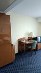 We booked a Comfort room, the room is spacious, a good bathroom, toiletries, two sinks. Comfortable beds and a good bed. There is a balcony. There is a carpet on the floor. Good varied breakfasts. In the evening, you can go down to the cafe and drink tea. The cost of living is adequate. Near the City Mall, metro station. The hotel, of course, is Soviet-era, battered, although they try to keep it in good condition, good repairs have been made, clean plumbing. But the furniture is broken in places, then the drawer in the bedside table is twisted, then there is no light bulb in the lamp. The towels are grey, washed. There is no kettle or refrigerator in the room, it is inconvenient. But there is bottled water. And there is a problem with food, there are no restaurants or cafes with national food in the area. All fast food and pizzerias. Although, this is not a hotel problem, of course. In general, it is quite budget-friendly to stay for 2-3 nights.