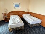 The rooms are large, which is the only advantage, perhaps. Room service also needs to be noted- the guys are trying their best, they clean well, towels are changed every day. On the downside: The furniture is old, the chairs are stained, and it's literally scary to sit on them. There are really dirty spots on them. There are old carpets, shabby furniture and walls, an old TV from 2000, down pillows and blankets, and it's dangerous for those with allergies. Personally, I was afraid that there were bedbugs in such conditions, it's really very sad. Breakfast is meager, the choice of dishes is not great. The coffee machine did not always work. In general, the hotel needs high-quality repairs and new furniture. I do not recommend it and I will not come to this hotel myself.,