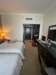 A Russian-speaking Shohista girl met us at the reception. It was already nice that this hotel has a Russian-speaking staff. We arrived much earlier, so we left our suitcases and went to the beach. They have their own transport to the beach, their own swimming pool, and their own fitness room. Upon arrival, by the time of check-in, she told us everything in detail, gave us a card. We came across room 2312 on the 23rd floor. I went inside and was in a pleasant shock! The beds are large, the interior is nice. Next, I began to consider what was being done. The plumbing was working properly. Towels, bathrobes, slippers, iron, ironing board, scales, safe, hair dryer, several hangers, a shower cap with an elastic band (which especially pleased me, it is very convenient to collect hair with an elastic band), cotton pads, ear sticks, nail file, sewing kit, shoe sponge, soap, shampoo, gel for shower, body lotion, conditioner (he also made me very happy, I don't know what kind of company, but I had very soft hair from him), a set of various teas, instant coffee, cream, 4 bottles of water, a kettle, a mug with a spoon, a refrigerator. There is a clothesline in the tub for drying clothes. There was not enough brush in the toilet at some points. It was very unusual that there was no package in the trash basket in the room, it seems to me that it would have simplified the work of the staff. Well, to be honest, there was not enough outlet near the beds. There were 3 sockets: near the kettle, and 2 in the table. Charging turned out to be universal, an adapter was not needed in this hotel. Very nice guys who cleaned the rooms on our floor, they even folded our pajamas🥰 There was no theft. Everything was always in place. We also had breakfast and dinner. But if you are going on an excursion, then at the reception you could ask to replace dinner with lunch. The food is varied and very tasty. At the bar, you could ask for a soda with ice. There was also tea, coffee, juices. There were queues, but this is normal, they still want to sit in comfort, and not look for places with a plate in their hands. The hotel is located close to the metro, and to the Museum of the Future. Very friendly staff. And a very multinational hotel. They took only the tourist tax. I was very pleased with the hotel! And I also really liked their fragrance in the hotel, a pleasant oriental🥰
