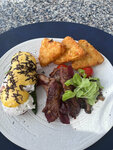 Positive: - Of course the view - Interior - Good service Minuses: - Space prices - The food is AS ordinary as possible We ordered: 3 aperol syringes, 1 crab sandwich (although there was really nothing from the crab), 1 beef tartare, 1 salmon steak, 1 burger - 1479 AED!!! Tip: of course, it's worth going there once, but not to eat, but to sit at a minimum (at the window 450 AED per person)