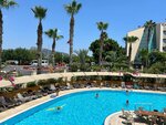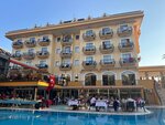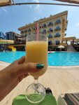 We stayed at the hotel from July 21 to July 30, 2025, together with my husband. We arrived at the hotel at 12 p.m. The air conditioners at the reception are not working, we were sitting in the unbearable heat waiting for check-in. The hotel representatives put on bracelets and told me to go to lunch. They asked for a room with a balcony. They promised to do it, but as a result they settled into a house across the street in a room without a balcony. There was a feeling that they wanted an additional payment, but we did not give it. We were lucky that we didn't have to wait long to check in. Many who arrived early in the morning were also waiting to check in, regardless of age, trying to somehow relax on small sofas after a tiring flight. Although there were plenty of rooms available. The room was clean, the air conditioner was working fine, the curtains were blackout, there was a bottle of water in the fridge. But the refrigerator itself wasn't working. The room is small in size. Audibility is only from the hallway, no one can be heard from the neighboring rooms. Many people say that there is enough food, you will not stay hungry. But if you have a bun with kefir, then you won't stay hungry either. We are not demanding tourists, but there was practically no choice. Dry and bony fish, meat, offal in a huge amount of oil or stewed chicken fillet, torn into small pieces. Side dishes are standard: rice, pasta, vegetables. There were no tomatoes for several days. Seasonal fruits: watermelons without delicious, green, unripe melons, tasteless grapes, wooden nectarines. I was generally surprised by the fact that tasteless fruits and vegetables. I hoped so, though. But our fruits in St. Petersburg are much sweeter and tastier now. Pastries: baklava, moist cakes (the Turks call them wet bread), chemical juices. The coffee is delicious. I liked the Turkish cheese and olives with olives. The photos of food and serving displayed in the reviews earlier do not correspond to reality. The bar offers beer, cocktails for the amateur, strong local drinks. Of all the entertainment: a lady with a belly dance came 2 times. It was more like begging for money with body shaking at tables. And once again, the "singers": a woman and a man. If you don't watch, but only listen, then it's quite normal. There was no entertainment for children. During the day, you could play darts, table tennis and billiards for a fee. The sea is nearby - it takes about 5-8 minutes to walk. It is more convenient to enter in special shoes. There are many sun beds. But no one cleaned the beach area. Room cleaning consisted of changing the same linen. If you throw in the towel, they can change it. The floor, toilet, sink, and mirror have never been washed. The pool is not large, the maximum depth is 145cm, the minimum is 120cm. There is a small frog house nearby for the crumbs. There was only one slide, it worked for two hours in the morning and evening. No one was watching what was happening in the pool. The children could even climb the slide when it was turned off. Many vacationers occupied the floor of the pool swimming on mattresses. The sun beds were occupied for the whole day. Some vacationers simply sunbathed on the tiles because there were not enough sun beds. The toilet has a perpetually damp floor and smells bad. There are showers next to the toilet, but they were always closed. And many vacationers would really benefit from a shower during the long wait for check-in. There is a shower in the hammam, but no one said anything about it. Unfortunately, no one conducted a tour of the hotel. During my vacation, indignation, even scandal, were only from vacationers from Poland. This hotel does not pull on 4* at all. And the reviews that are written here are not true. After such a vacation, you can completely discourage love for Turkey.