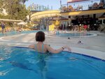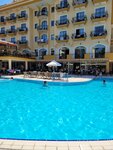A decent all-inclusive hotel complex. Multiple meals with free drinks/cocktails. Convenient location 5 minutes walk to the sea, close to shops where you can go shopping. The hotel has its own beach with a bar, sun beds, umbrellas. There is a clean swimming pool on site. There is an entertainment program. Very friendly and friendly staff, who speak different languages. Grilled meat/fish is served for dinner every evening. There are spa treatments: massage, as well as a free sauna and hammam. The hotel provides the opportunity to book a transfer from and to the airport for an excellent price. I recommend it!