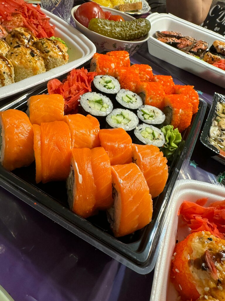 Заказали набор «микс» за 2120р 1450гр. Есть невозможно от слова совсем. Три взрослых человека не смогли откушать и половины. На вкус хуже суш из пятерочки. 70% начинки это творожный сыр довольно низкого качества. Перебивает какой либо вкус. И разнообразие начинки откровенно 0. Абсолютно во всех видах - это 70% сыр🤮 и огурец 15%, и в некоторых это типо мидий или омлет. Из 1450гр вы покупаете как минимум 1кг отвратного творожного сыра. Категорически не советую. На фото все 6 ролов из этого сета Не знаю кого винить, хозяина или сушиста. Возможно это один и тот же человек. Даже в сетевых ресторанах по типу Токио сити за примерно такие же деньги и граммовки качество гараздо выше. Г. Волхов 23.11.2025
