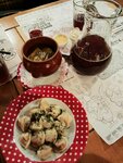 Как ни удивительно основное блюдо - это вареники. Вареники хороши. так же брали салаты, закуски к настойкам, пиво. Сытный завтрак позволил гулять без обеда. Удачное расположение. Приятный интерьер.