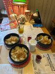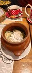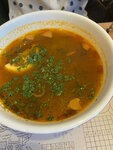 Были на днях именно в этой вареничной. Были и в других, на ВДНХ например. Но Три звезды ставлю здесь, потому что разочарованы оказались. Зашли в дождливый вечер перед отъездом отужинать. Заказали солянку. Если бы я сразу увидела, что она из себя представляет, то пригласила бы администратора и повара. А так, все уже стали есть ЭТО. Когда я присоединилась, то - на вкус да, солянка - помешав ложкой, поняла что это бульончик (надеюсь мясной)+много лука, морковь (!?) + несколько тонких кусочков сосиски и ещё меньше кусочков какой-то колбаски (типа охотничей) + 3-5 оливок и маслин + долька лимона. Всё!!! Это солянка по вашему?! Или это остатки от обеда вечерним посетителям?)) Как в столовке! Никакого намёка на мясо, хотя бы один кусочек на порцию) Если уж за 500 рублей по вашему мясо не положено, то хотя бы погуще сделали мясных продуктов (сосисек и т.п.), а вместо лука (1/3 тарелки на дне осталось) столько же картофеля добавили)) Не люблю солянку с картошкой, но так хотя бы сытнее было. Позор повару! И хозяевам контролировать бы это надо. Атмосфера приятная, но с таким отношением к клиентам, рейтинг пойдёт вниз.
