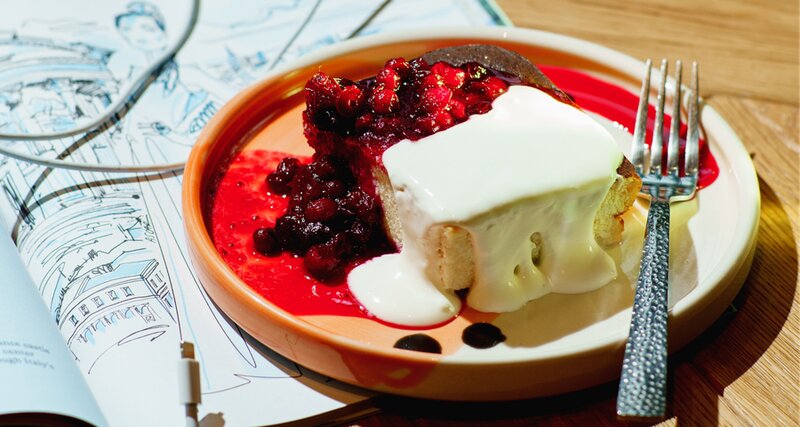 Творожная запеканка с клюквой и ванильной сметаной