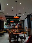 плюсы: приятный интерьер, большой выбор блюд, вкусная еда, быстрое обслуживание и подача еды (15-20 минут), милые официанты минусы: хоть тарелки и большие, блюдо просто размазано по тарелке; меню было в чем то липком; непонятная, неподходящая, громковатая музыка; когда приносили блюда, официант совсем не запоминал кто и что заказал в целом, неплохое место, чтобы забежать быстро перекусить, но из-за наличия мелких косяков вряд ли вернусь сюда еще