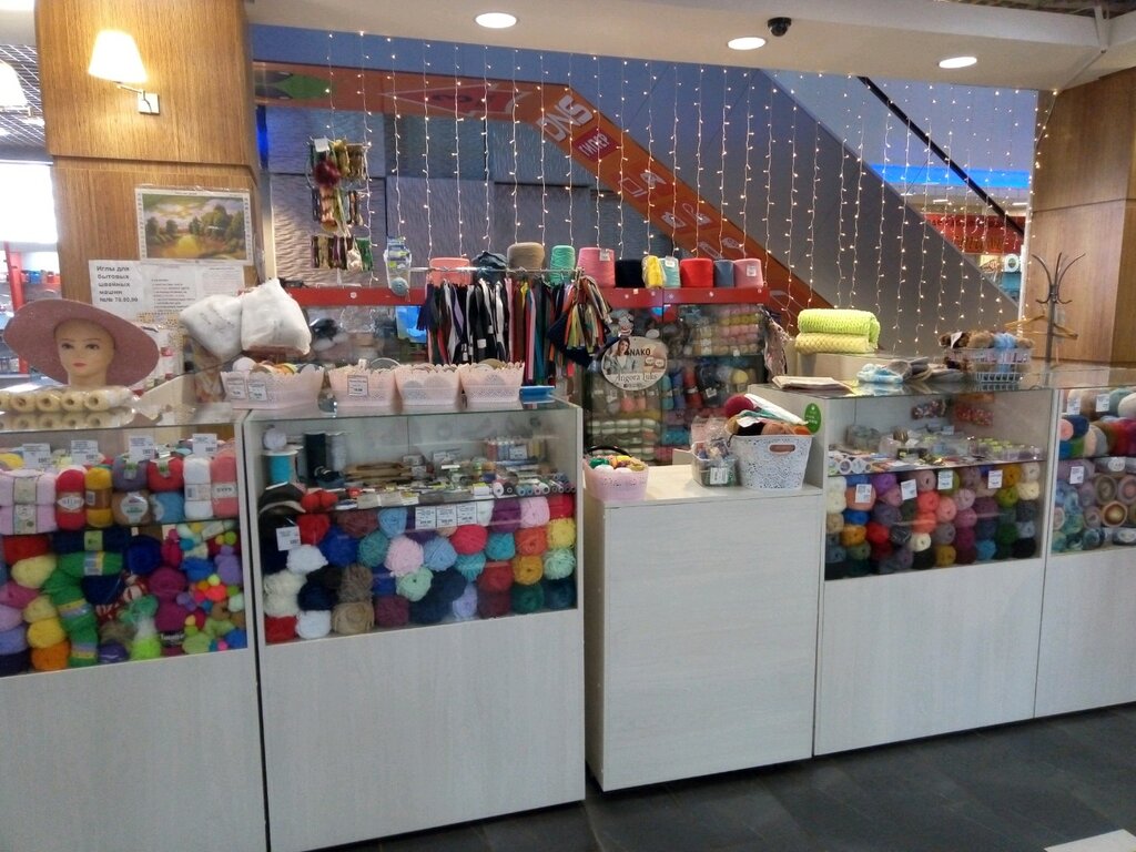 Хороший отдел. Удобно расположен. Есть много мелочевки помимо пряжи - кнопки, замки, пуговицы, нитки, иглы для швейных машин, кружево, резинка, спицы, канва, пяльца, бисер, мулине, фетр, в том числе и глитерный. Цены ниже, чем на маркет плейсах и не надо ждать доставку.