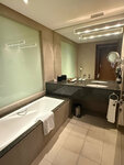A huge hotel with quite decent rooms. In the standard category, the room size is not very large, but the bathroom is spacious. The price is not from the budget. The location of the hotel is convenient. Next to the shopping center with Ikea, Nike discount and a couple of premium brands, currency exchangers. There are various cafes and restaurants nearby. The bus station is also nearby, so you can take a bus from/to the airport. Due to the large number of rooms and guests with elevators, sometimes there is a collapse. You can wait for the elevator downstairs for a long time and also go down from above for breakfast or at the reception. I used the second group of elevators away from the reception more often - to the left to the end. There are no traffic jams and urban traffic. The breakfasts are good in terms of assortment, but again it's crowded. So sometimes you don't want to wait for a personal scrambled egg and take what is offered in ready-made variations. The choice is quite sufficient. The pool on the top floor is good for swimming and just wallowing. But there are very few sun beds and they are almost always occupied due to the huge number of guests in the hotel. The chances of free sun beds increase as breakfast time passes. Almost everyone is in the shade of the roof and sunbathing by the pool in the sun is extremely unlikely. For two or three nights on a work trip, it's fine, but for a longer and more tourist vacation, it's better to choose something closer to the beach line. Which was done for the second part of my stay in Abu Dhabi.