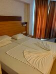 We are resting in this hotel now, the hotel is very tired, the rooms are in the same style,... food, you will not stay hungry, but there is almost no choice in meat and fish, there are a lot of vegetables, we came here based on good reviews, but the hotel is only for tourists, I spent the night and okay,... rested in Alanya in a touch, experia sarai, Bali, azak, everything is super there, the hotel does not pull for 4 people, but it is 5 minutes to the sea at a quiet pace, the staff at the hotel is very friendly, friendly, the pool is tiny, but everyone has their own, and the location is great, the main thing is a good mood