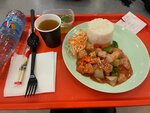Люблю в торговых центрах брать азиатскую еду, как полезную альтернативу фастфуду. Вчера выбор пал на точку с китайской и вьетнамской едой. Она подкупила меня большим разнообразием блюд, а мой выбор пал на курицу в кисло-сладком соусе с рисом и говяжьим бульоном. Большим плюсом считаю комплексность блюд, то есть в одну порцию входит и суп, и чай, и салатик. Честно, на вкус было очень пресно, словно я сама решила приготовить еду в азиатский манере, используя при этом самые дешевые продукты и неправильную технологию обжарки. Самой курицы было очень мало, она была размокшая, и вообще выглядела как жареный кабачок. Наверное, с точку зрения БЖУ, получилось весьма полезно, но удовольствия от еды не получила..