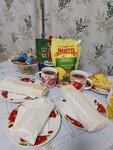 Вкусная еда! Большие порции! Отзывчивый персонал! Заказываем заранее(за день) и к твоему приезду все готово,ждут вас! За 1100 рублей: нарезка овощная(большая полная тарелка), фруктовая тарелка, морс, на первый-суп, второй, салат! Креветки-вкусные! Мясо-отличное!