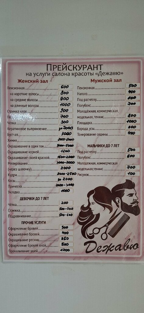 Price for women's haircut:500–1000 ₽