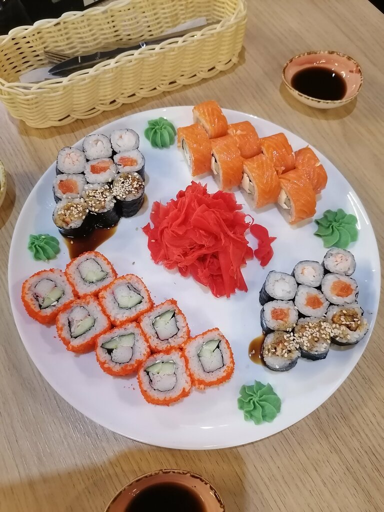 Очень вежливый персонал, быстро и четко обслуживают. Объяснили какую и как можно получить скидку в день рождение. Очень вкусные молочные коктейли. Роллы нормального размера и очень вкусные. Соевый соус стоит на столе к ним просто принесли посуду куда наливать , также здесь есть салфетки и зубочистки . Рядом есть удобная парковка для. клиентов. Рекомендую 👍