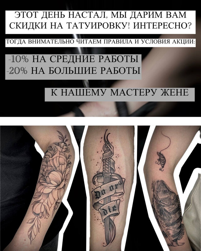 Мастер Евгений дарит нам весеннее настроение в виде бонуса -10 % на средние работы, -20 % на большие работы! Только индивидуальные эскизы!