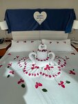 Nice hotel with its own beach. They decorated the room on the other side and arranged congratulations ! The hotel is on the first line.