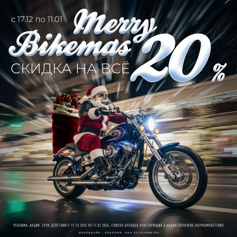 Merry bikemas! Скидка 20% на всё* в ДрайвБайк до 11.01.2026 Рождество и Новый Год не за горами, а значит самое время готовить подарки близк...