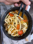 Очень жаль, что заказал до того как открыл почитать отзывы. Был только лагман курицей. Очень долгое ожидание, вместо 10 минут - отдавали 25. Бульон очень жидкий, слишком острый. В целом не вкусный лагман.