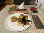 Something incredibly tasty, the menu is small, the cozy courtyard, the cuisine is Armenian with some European elements