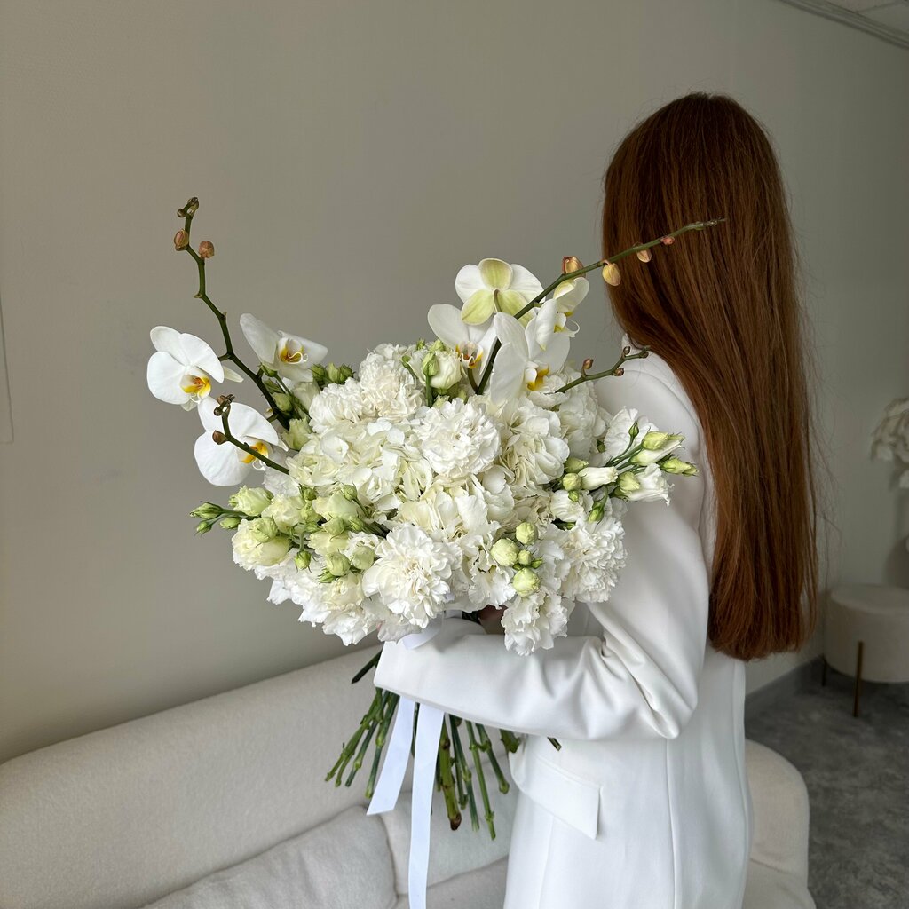 Этот букет — как маленькое чёрное платье: он всегда уместен и говорит о безупречном вкусе того, кому он предназначен. Элегантность, которая не нуждается в лишних словах.