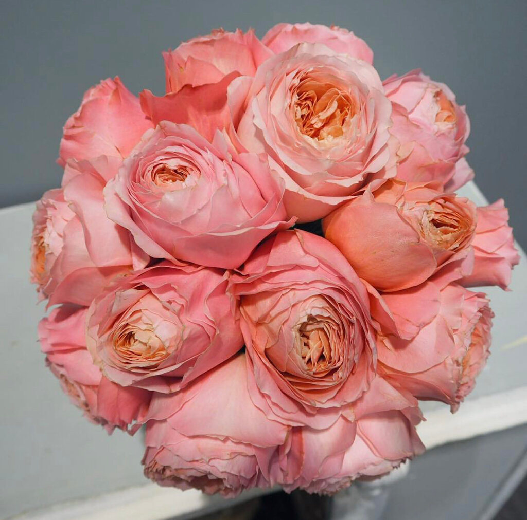 Сдержанные и элегантные оттенки этого букета подходят под все события в жизни. Диаметр букета – около 25-30 см. Состав продукта Микс из 21 пионовидной, кустовой и садовой розы, рускус, фирменная упаковка, фирменная карточка для текста (по желанию)...